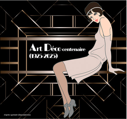 22-23/07/2025 - Les 100 ans de l'art déco. Pour l'affiche "Élégance ..." j'ai pris un fond moins verdâtre et choisi une robe moins chargée.
