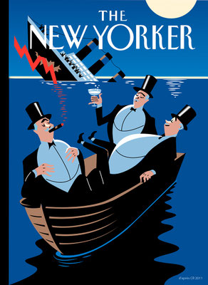 J'ai retenu trois des couvertures réalisées par Christopher Niemann, né en 1970, par ailleurs spécialiste du détournement des images. Sa version "Titanic" est de 2011 les deux autres fêtent le centenaire de 2025.