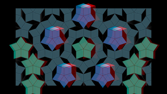 Roger Penrose (91 ans), prix Nobel de Physique 2020, a une passion pour les pavages voici une de ses mosaïques reprise en anaglyphe.