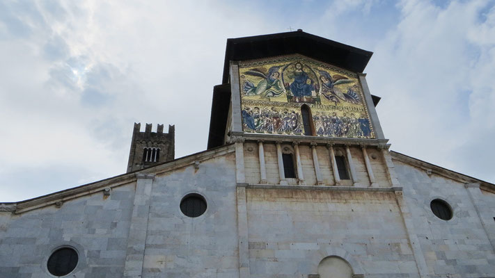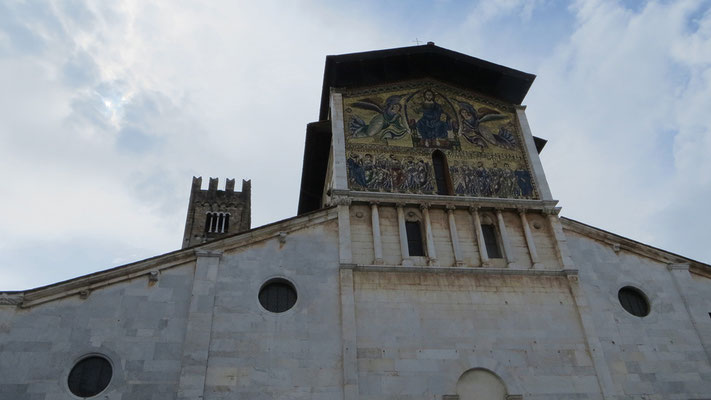 La photo originale, à gauche, est en contre-jour donc dépendante de la lumière générale et du ciel en particulier. Notre œil va automatiquement ajuster son diaphragme, l'iris, selon que nous déplacions notre regard sur la façade ou sur le fronton de mosaïques.